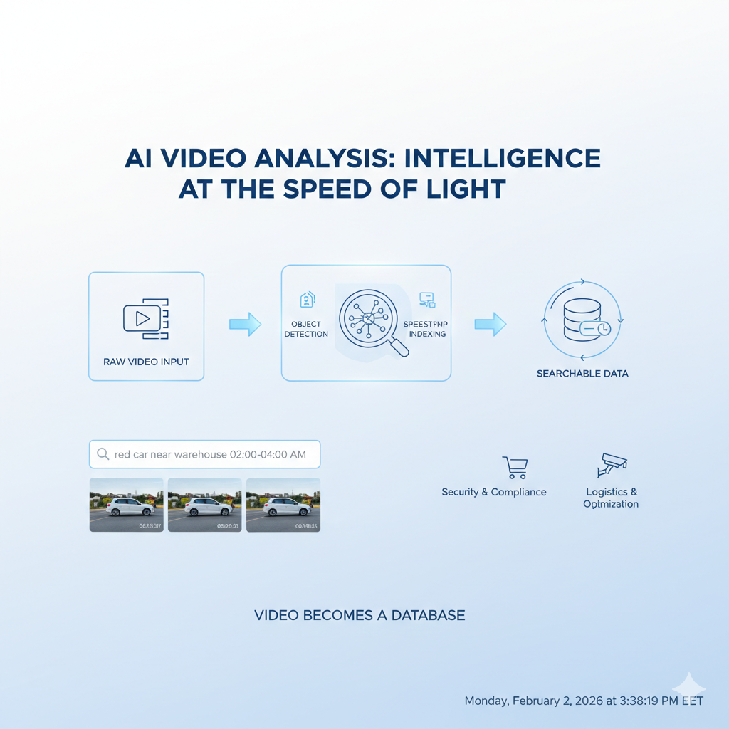 Instead of watching hours of recordings manually, AI systems detect objects, transcribe speech, identify events, and connect everything to exact timestamps.