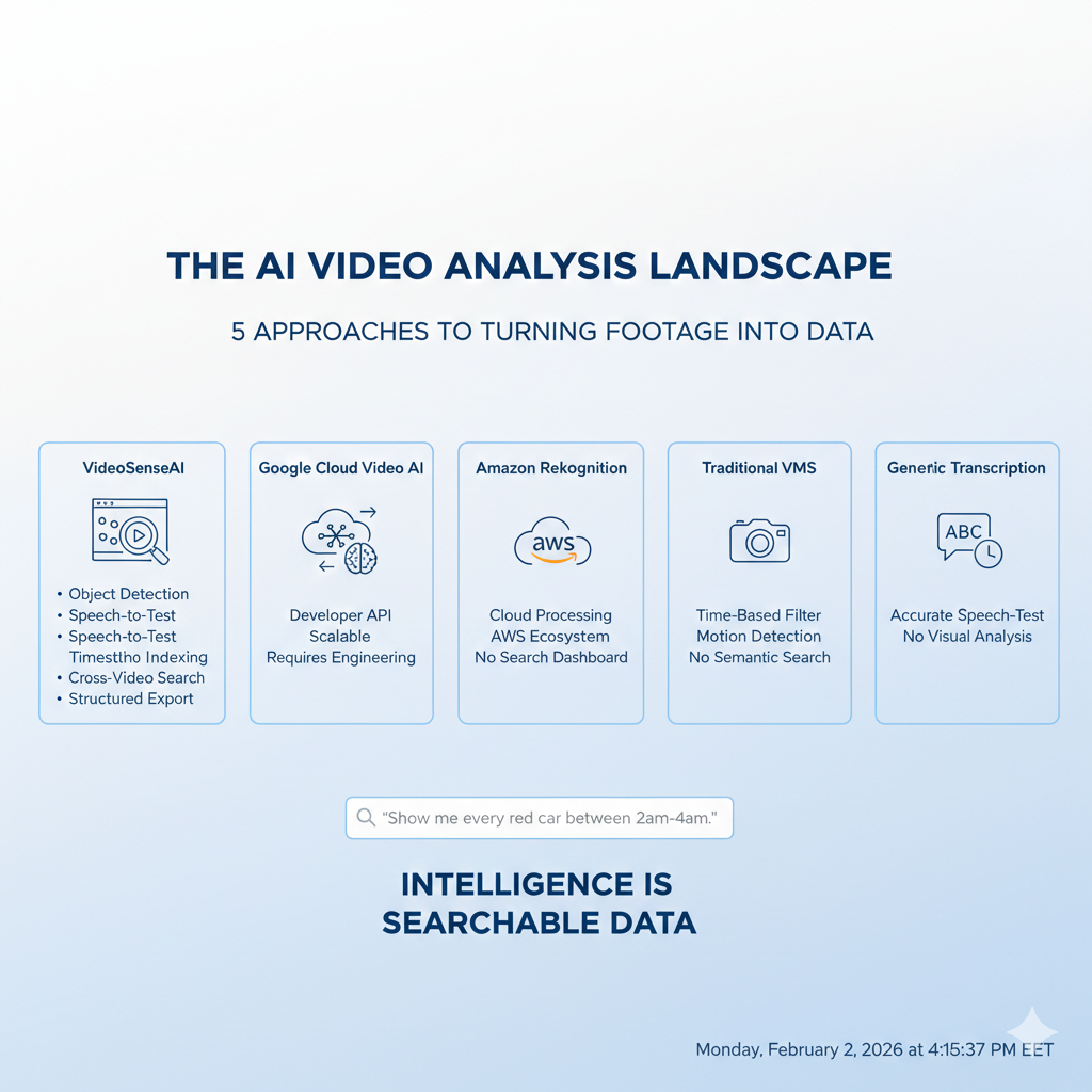 Compare the top AI video analysis software tools in 2026. Learn their pros, cons, and how VideoSenseAI turns raw video into searchable data.