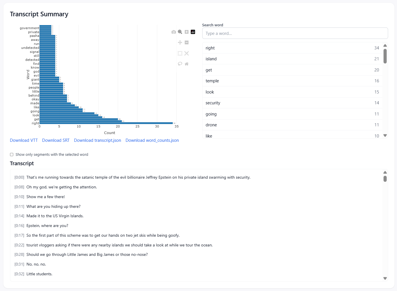 In many cases, video evidence includes audio. VideoSenseAI automatically generates:
