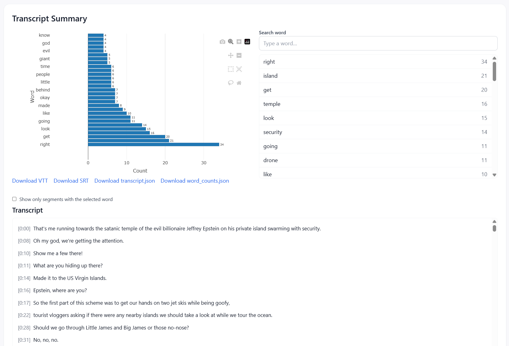 - Word frequency charts derived from audio transcription